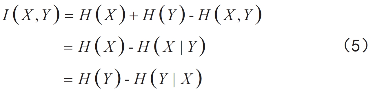 互信息是一種數(shù)學(xué)定義,用來評估隨機變量之間的關(guān)聯(lián)性。它表示兩個隨機變量中的共有信息。由信息熵描述的互信息表達式如下[12]: